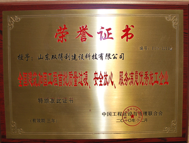 - 公司先后成為全國第一屆《工程抗震與加固改造》理事會理事、中國《工程加固》行業協會會員;被評為"全國建設系統重合同、守信譽、信得過"單位、"全國建筑加固工程質量過硬、安全放心、服務滿意優秀施工單位"及"全國政府放心、用戶滿意先進單位"、"全國建設信用AAA級誠信企業"及 "省級守合同重信用"企業,技術水平始終保持行業領先地位。